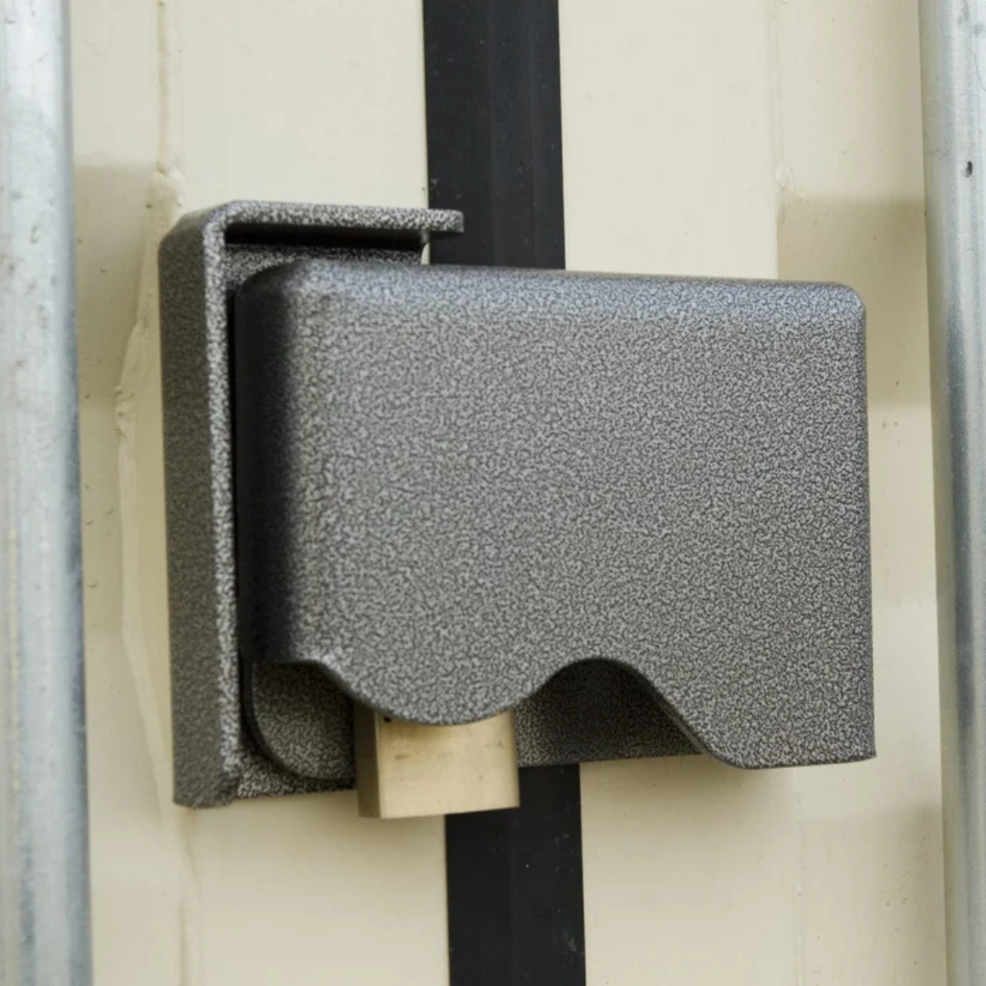 Cette boîte de verrouillage à ouverture à droite est la solution idéale pour sécuriser rapidement et efficacement votre conteneur — avec tout le matériel inclus.